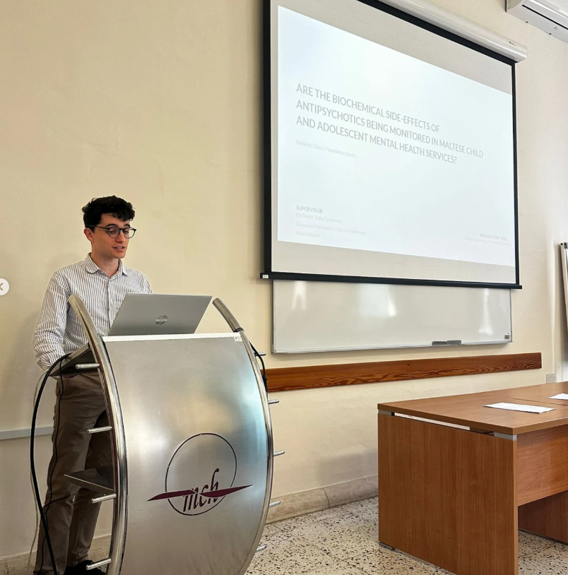🏆Second Place - Are the Biochemical Side Effects of Antipsychotics being monitored in Maltese Child and Adolescent Mental Health Service? - Dr Nicholas Galea, Dr Daniel Vella Fondacaro