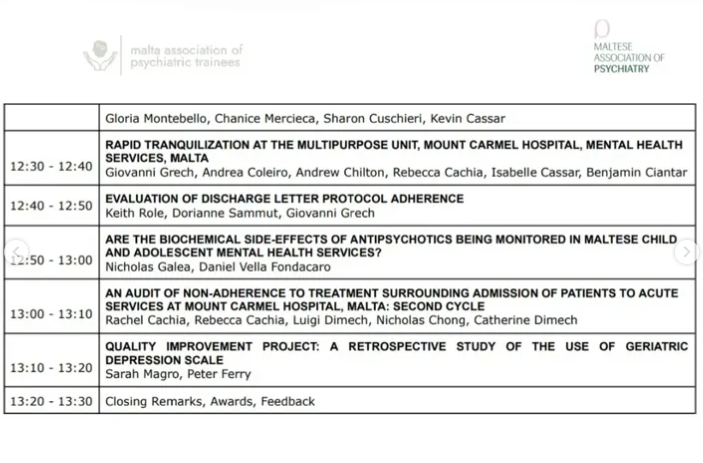 🏆First Place - Rapid Tranquilisation at the Multipurpose Unit, MCH, MHS, Malta - Dr Andrea Coleiro, Dr Andrew Chilton, Dr Rebecca Cachia, Dr Isabelle Cassar, Dr Benjamin Cassar, Dr Giovanni Grech